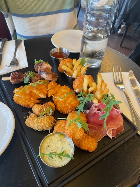 Tapas : poulet crispy, brochette de canard, croustillant de gambas, jambon serrano, chèvre pané                                                                                                        seul 18.00€ à partager 28.00€