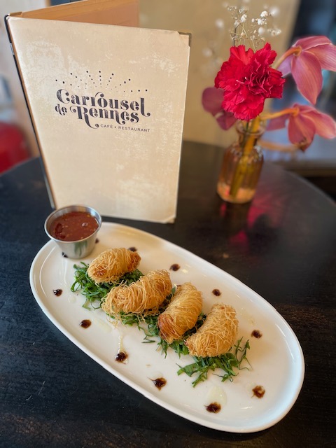 Croustillants de gambas au Basilic & sauce pimentée                   14.00€